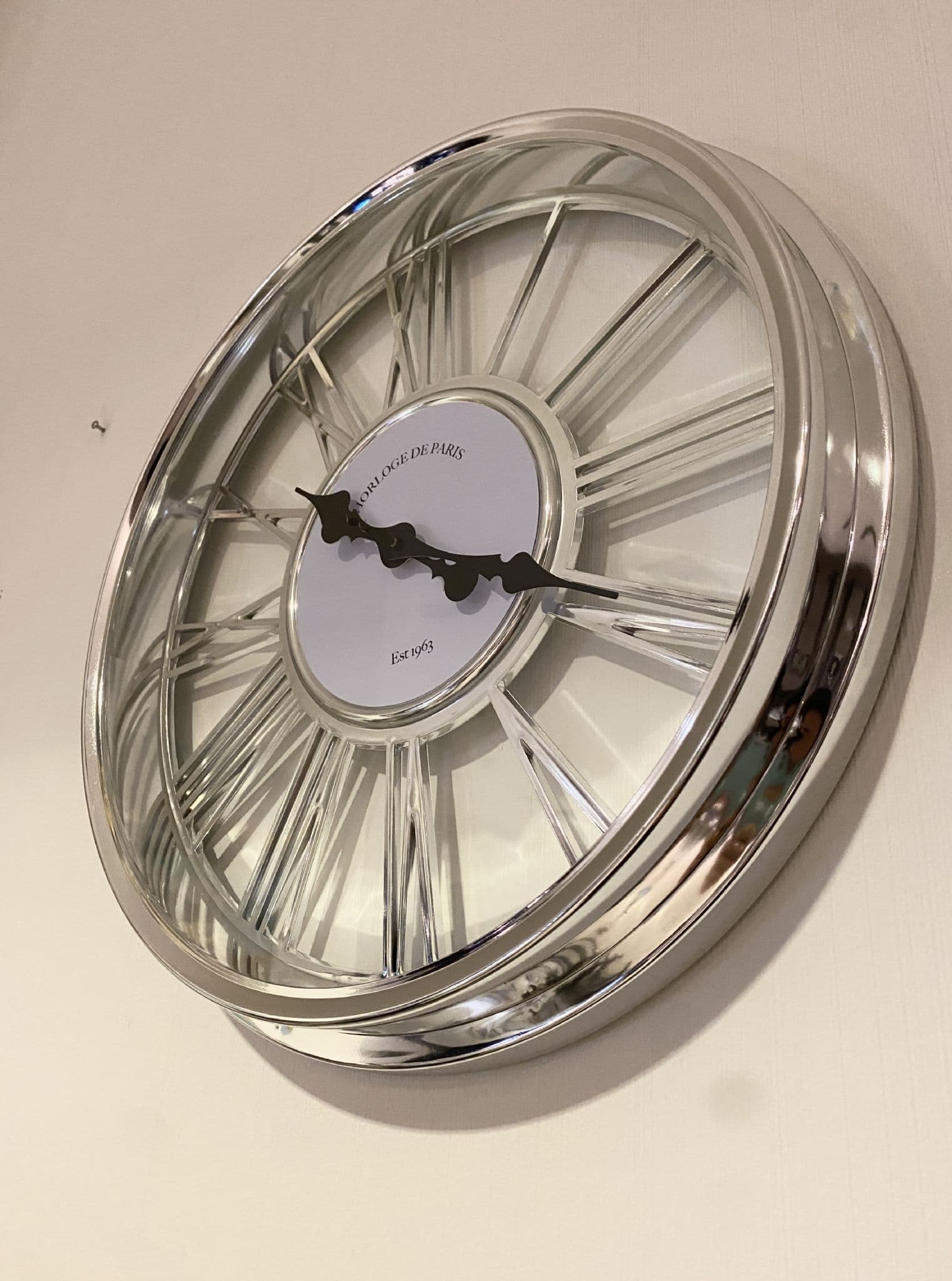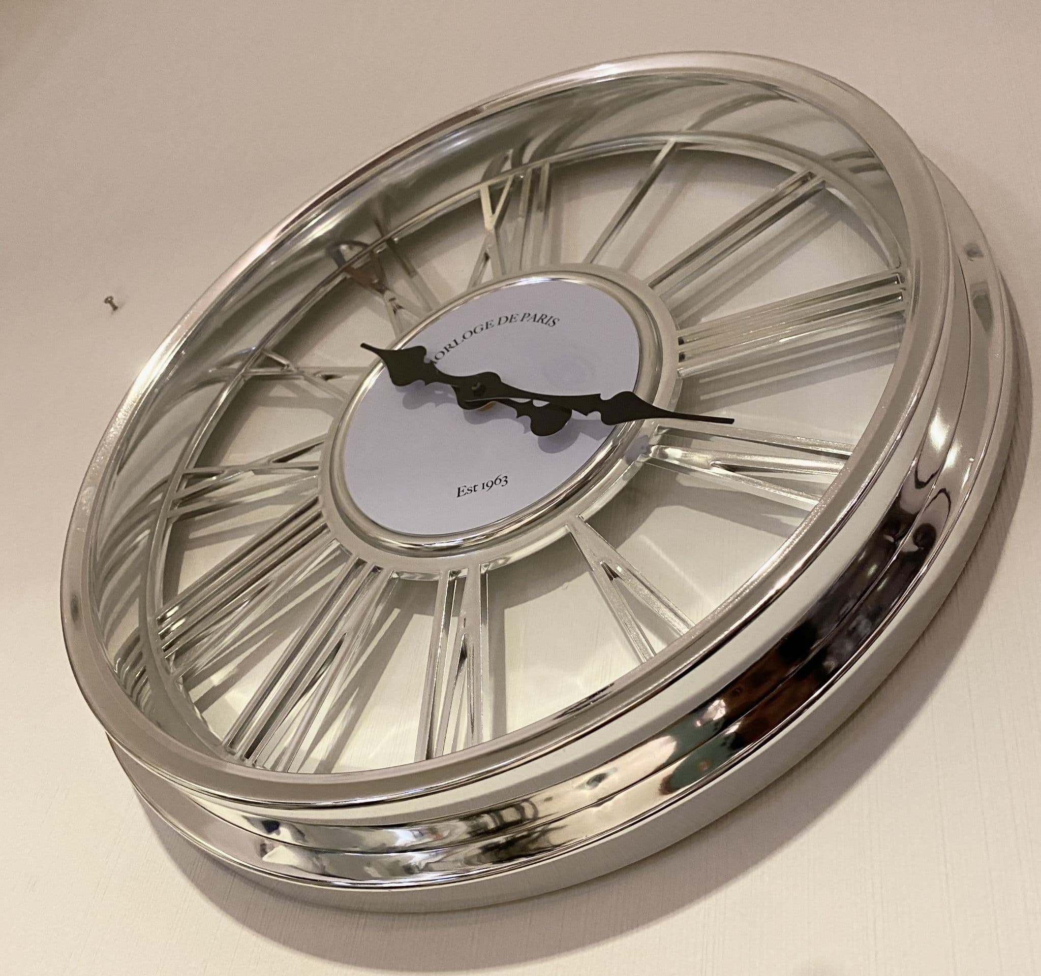 Home / Clocks View more images Product Description Build your artistic vision with this intricate clear wall clock. Featuring stunning detailing such as classy hands, roman numerals and a sharp silver finish to enhance the overall piece. A fine item to displayed in your living area Features: Wall Mirror Clock Roman Numerals Sharp Silver H5 X DIameter 45cm Specifications Size H26 X D57 X W155cm Material Plastic, Glass Finish Silver GTIN 5024418932635 Brand Home Luxe Product Code CL1917 Weight 1.6kg Customer reviews No reviews left yet Write A Review Sort byMost RecentTop Rated Description Build your artistic vision with this intricate clear wall clock. Featuring stunning detailing such as classy hands, roman numerals and a sharp silver finish to enhance the overall piece. A fine item to displayed in your living area Features: Wall Mirror Clock Roman Numerals Sharp Silver H5 X DIameter 45cm Reviews No reviews left yet Write A Review Sort byMost RecentTop Rated Attributes Size H26 X D57 X W155cm Material Plastic, Glass Finish Silver GTIN 5024418932635 Brand Home Luxe Product Code CL1917 Weight 1.6kg Delivery & Returns Delivery is free for all orders over £100 for a standard item in UK. All furniture & fragile items delivery charges depend on the items you purchase which can be calculated at the checkout. Once your product has shipped, it usually takes 2 to 3 business days in UK for delivery. You can return any item to us for a full refund less any delivery charges within 28 days of purchase. Please retain all original packaging and boxes. Customer Reviews 45Cm Roman Numeral Clock Silver Out of stock Product Code CL1917 RRP: £26.99 £20.00 Out Of Stock? Visit Our Retail Showroom Clearance Prices Login to add this product to your wishlist. You may also like Item in Stock Roman Style Square Mirror Clock 81cm 0 review(s) Add to cart Quickview Item in Stock Large Roman Style Round Mirror Clock 80cm 0 review(s) Add to cart Quickview Trustpilot COLLECT FROM STORE AND GET UP TO 40% DISCOUNT Collection Available From Our London Showroom With many customers wishing to view our products in our London showroom, we're now offering our customer a HUGE 40% OFF THE ORDER when you collect. (T's & C's Apply) More Details