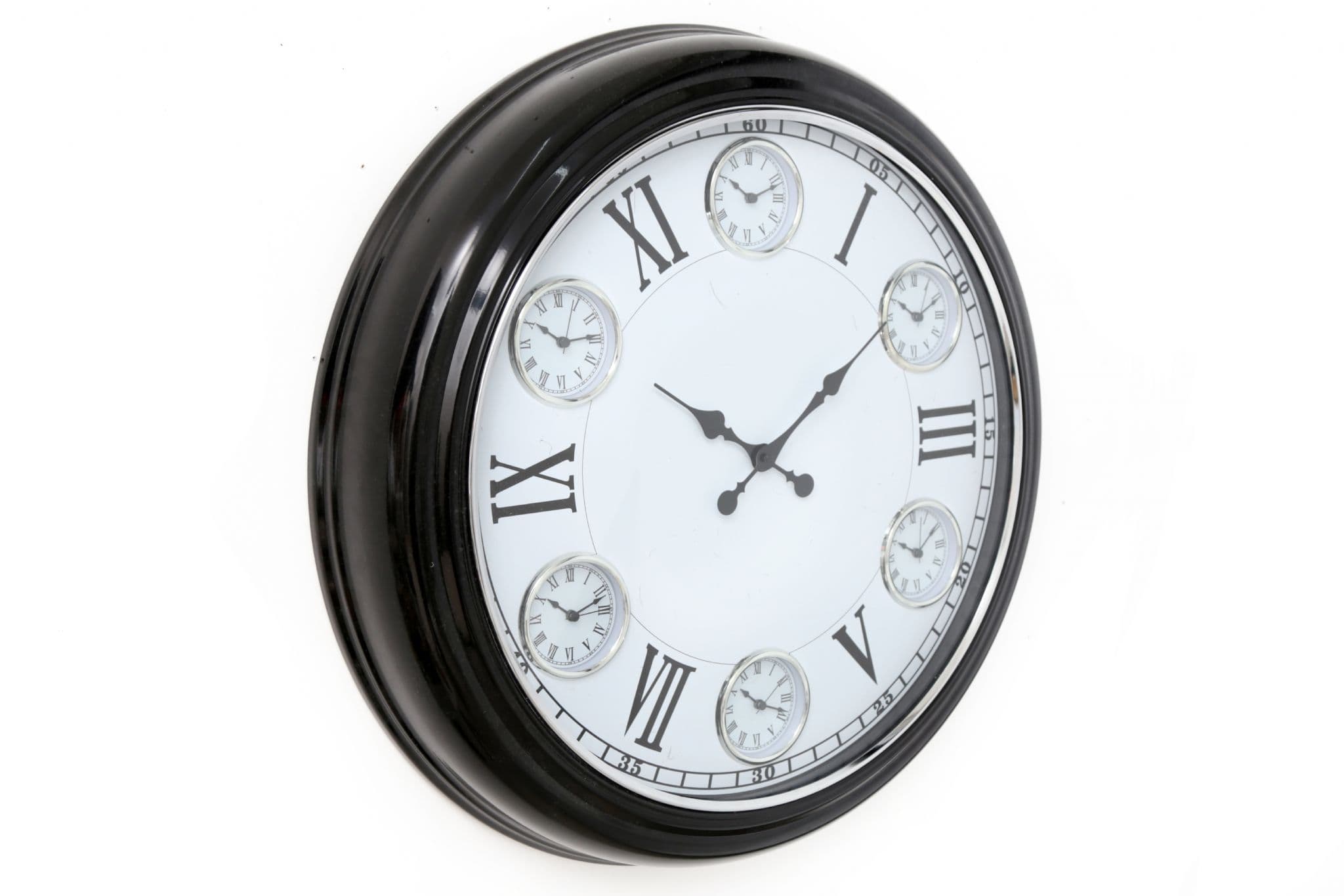 65Cm Glossy Black Multi Dial Clock