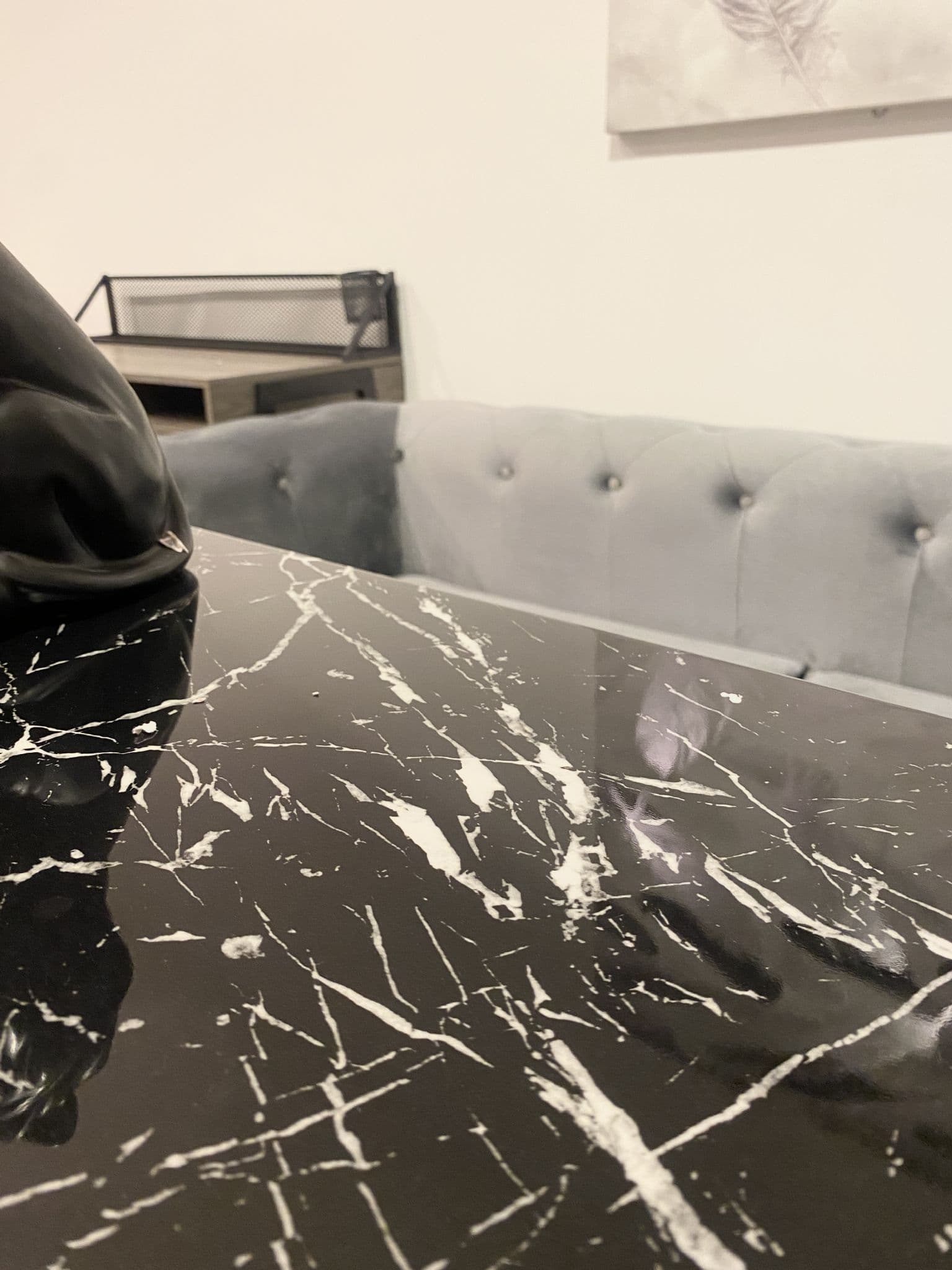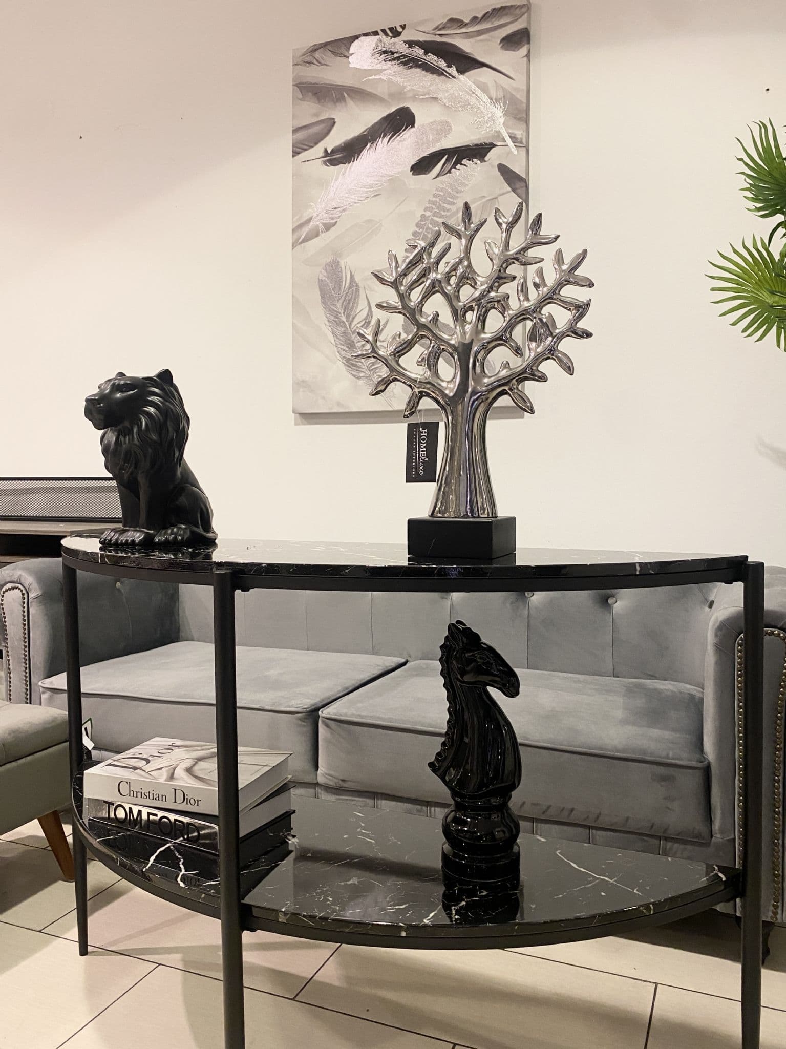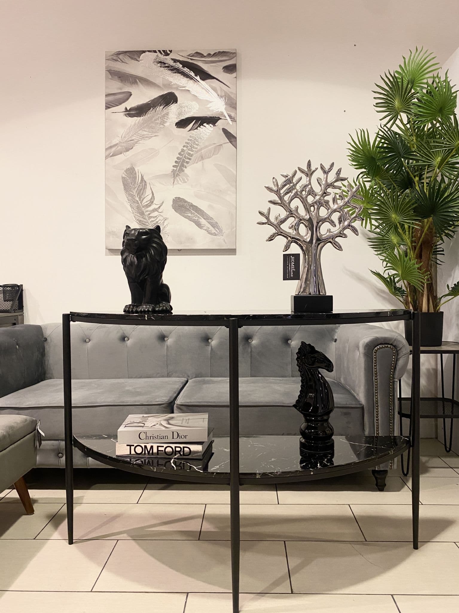 Black Half Moon Marble Effect Console Table