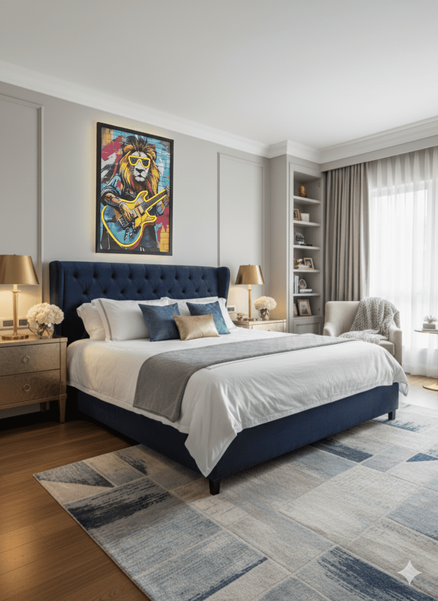 Rock Star Lion Guitarist Neon LED Wall Art - 40x60cm Canvas USB